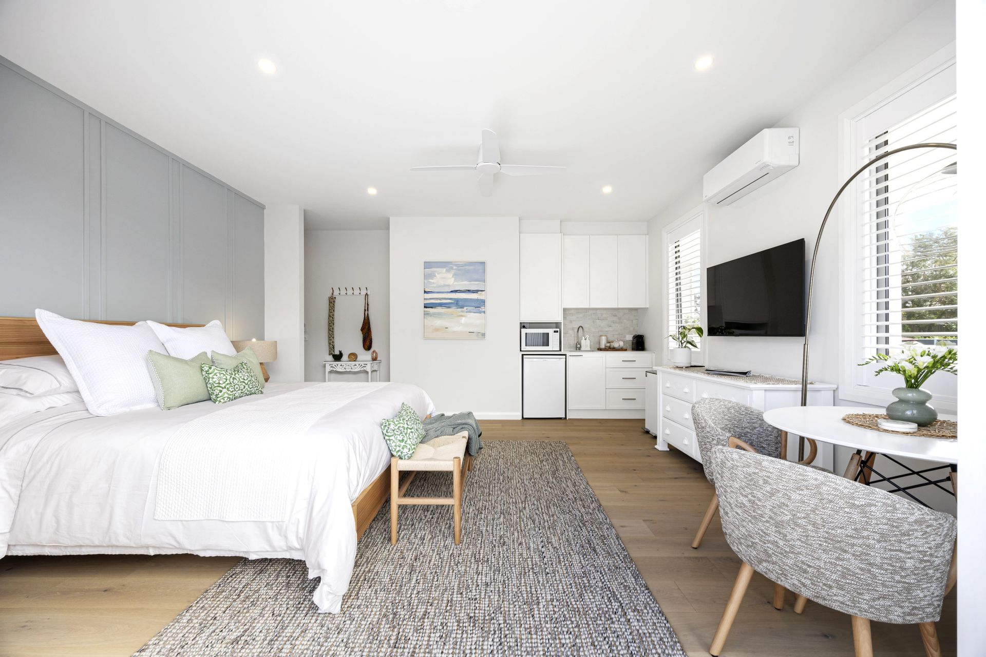 Completed in 2025, the studio is thoughtfully set up with a king bed with quality linen, a private ensuite, walk in robe, TV and WiFi. The kitchenette includes a microwave, mini-fridge, toaster, kettle and Nespresso pod machine, along with the basics for a relaxed breakfast or simple meals. A neat courtyard gives you your own outdoor spot to unwind.