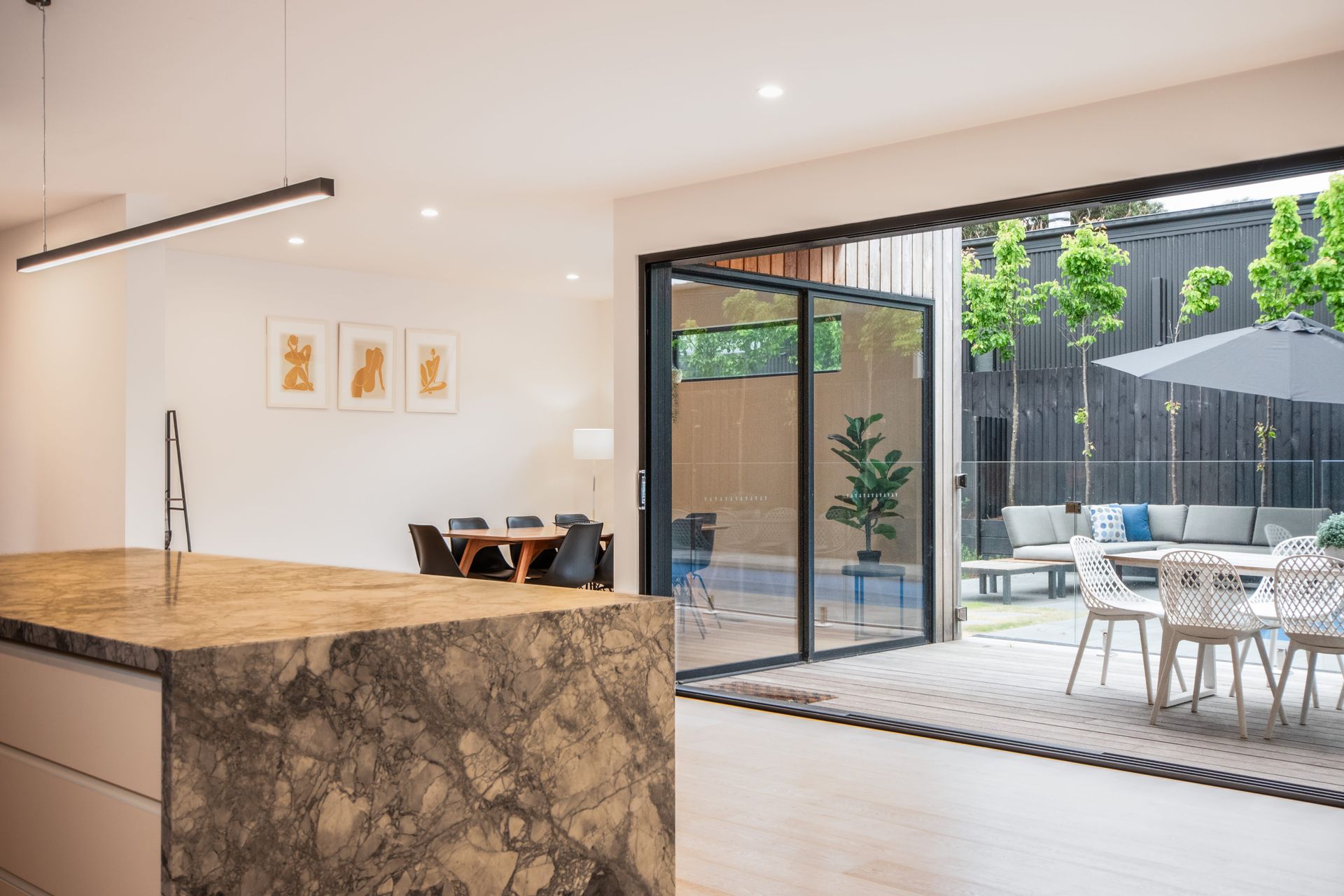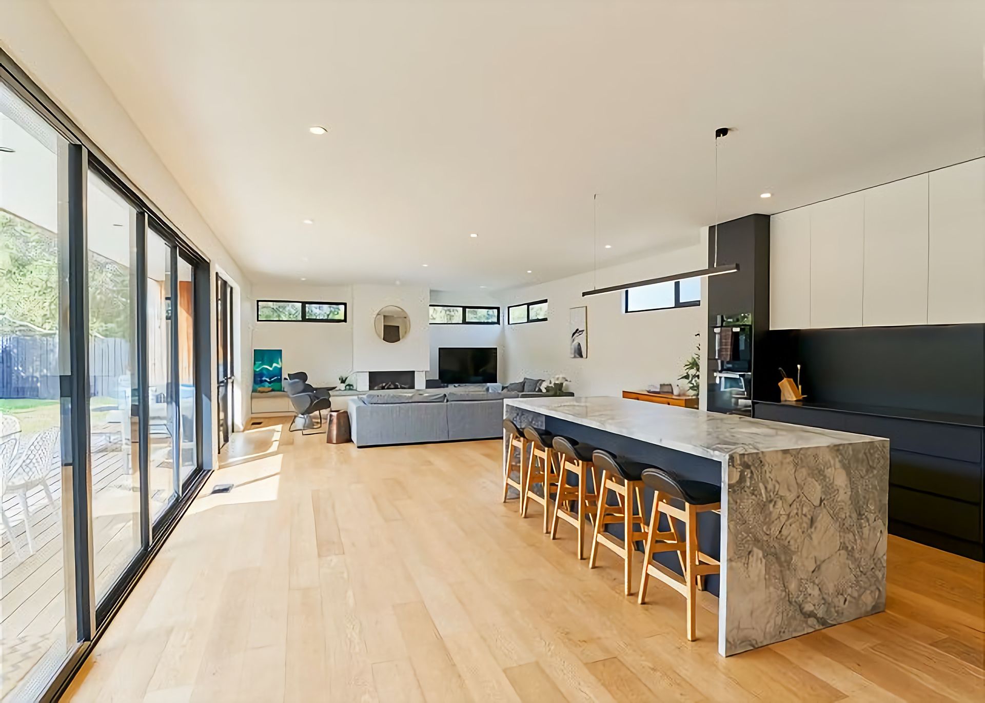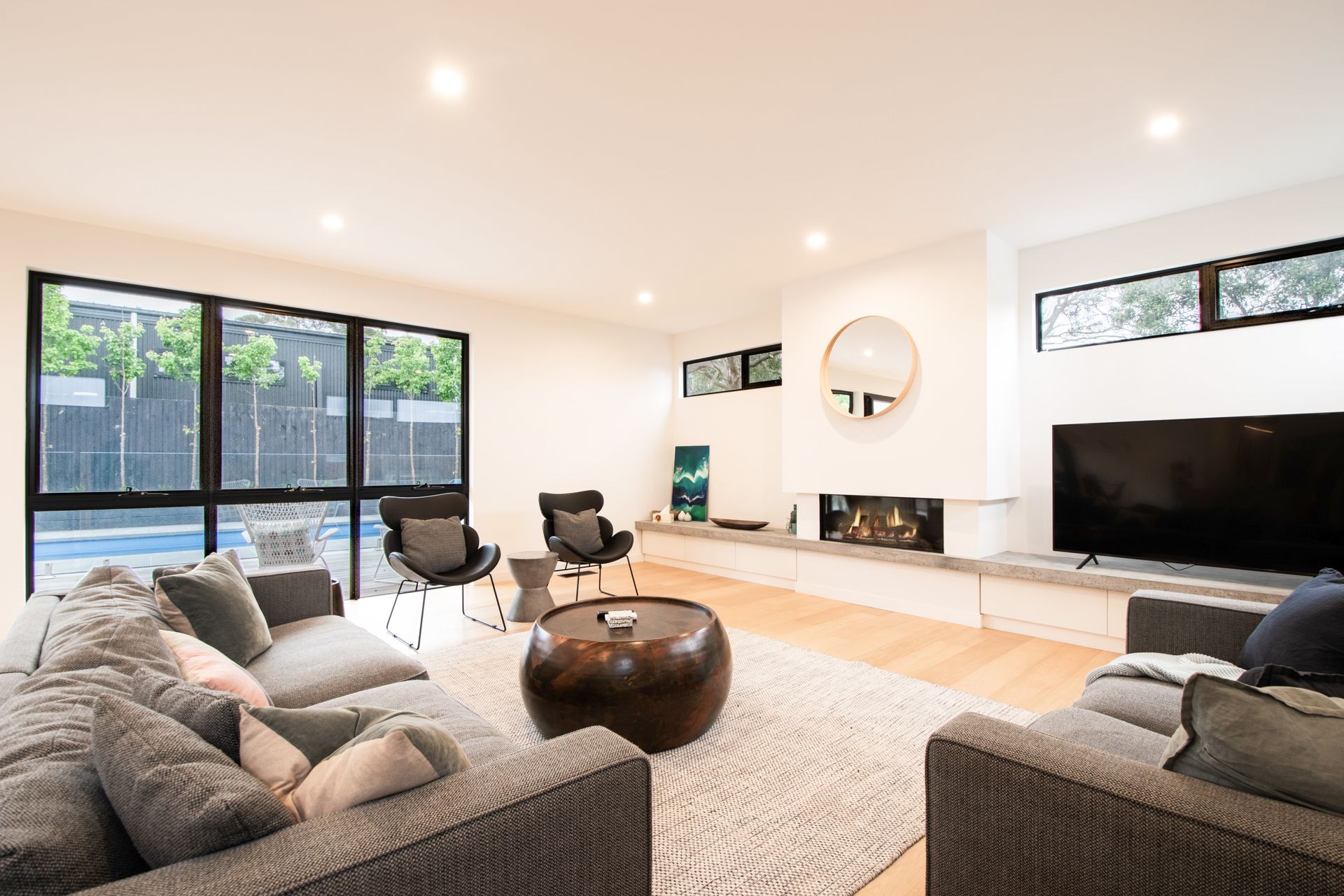 Enjoy incredible indoor/outdoor living spaces beside the large deck and swimming pool area in the very private backyard. A fire-pit retreat is tucked away behind the house, making it nicely sheltered, and is set up with ample outdoor bench seating to enjoy an evening beneath the stars. Gas BBQ, outdoor 5-seater lounges with large retractable sun-unbrella, and sheltered alfresco dining for 8-10 people complete the outdoor zone which is adjoined through enormous sliding doors to a stylish open-plan living space.
