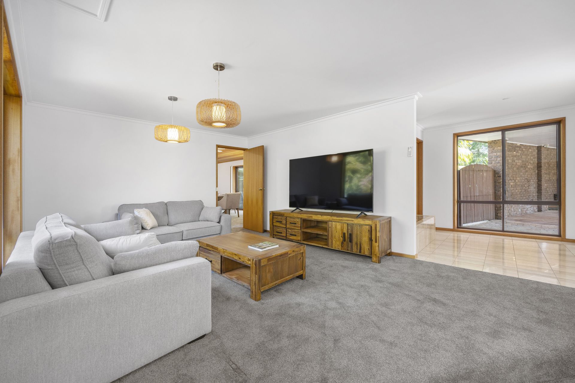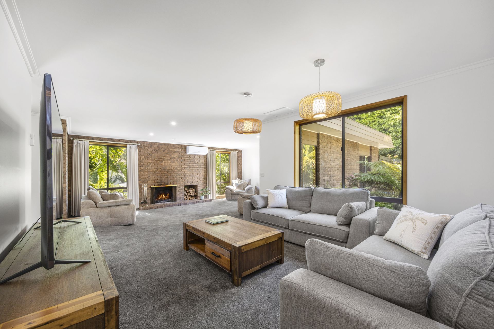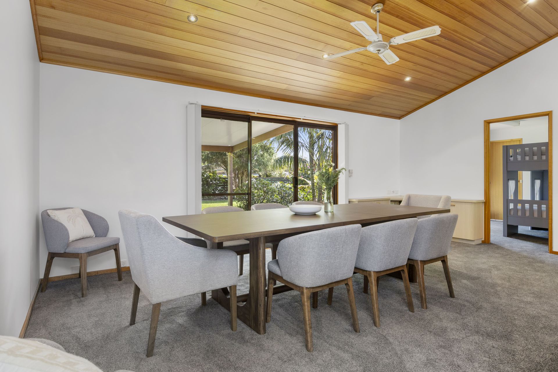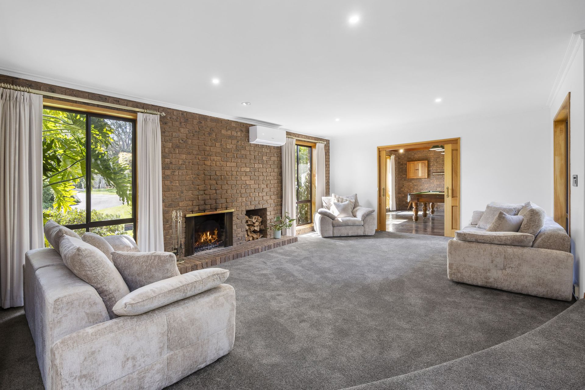 Two spacious living areas open through to the kitchen and dining, making it simple to gather for family time and shared meals. The main lounge features an open fire, split system, plenty of comfy couches, and a Smart TV. The dining table seats ten, perfect for long dinners together, while the kitchen is well-equipped with generous bench space, four stools for casual chats, an air fryer, a Breville espresso coffee machine, microwave, five-burner gas cooktop, oven, fridge, freezer and dishwasher.