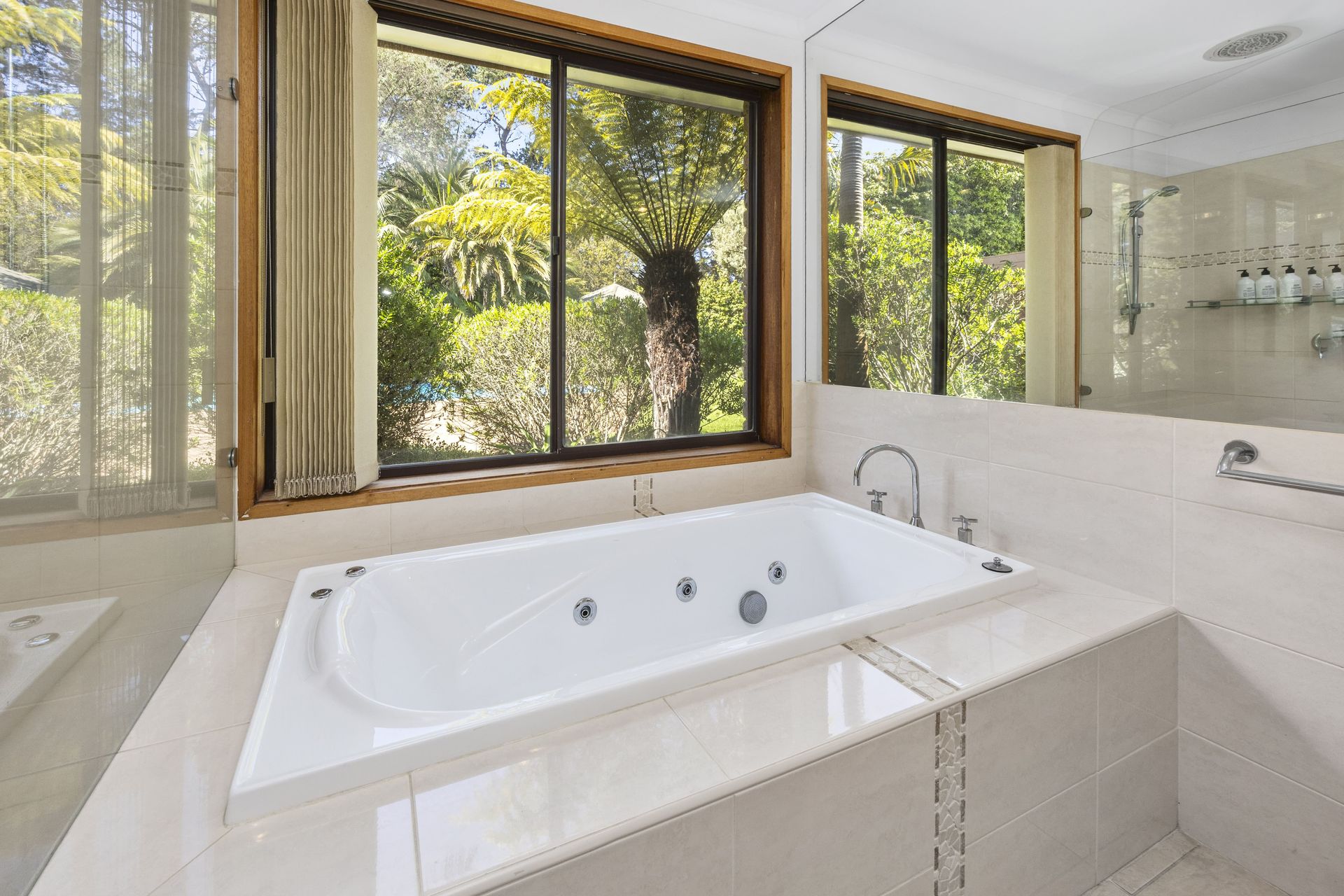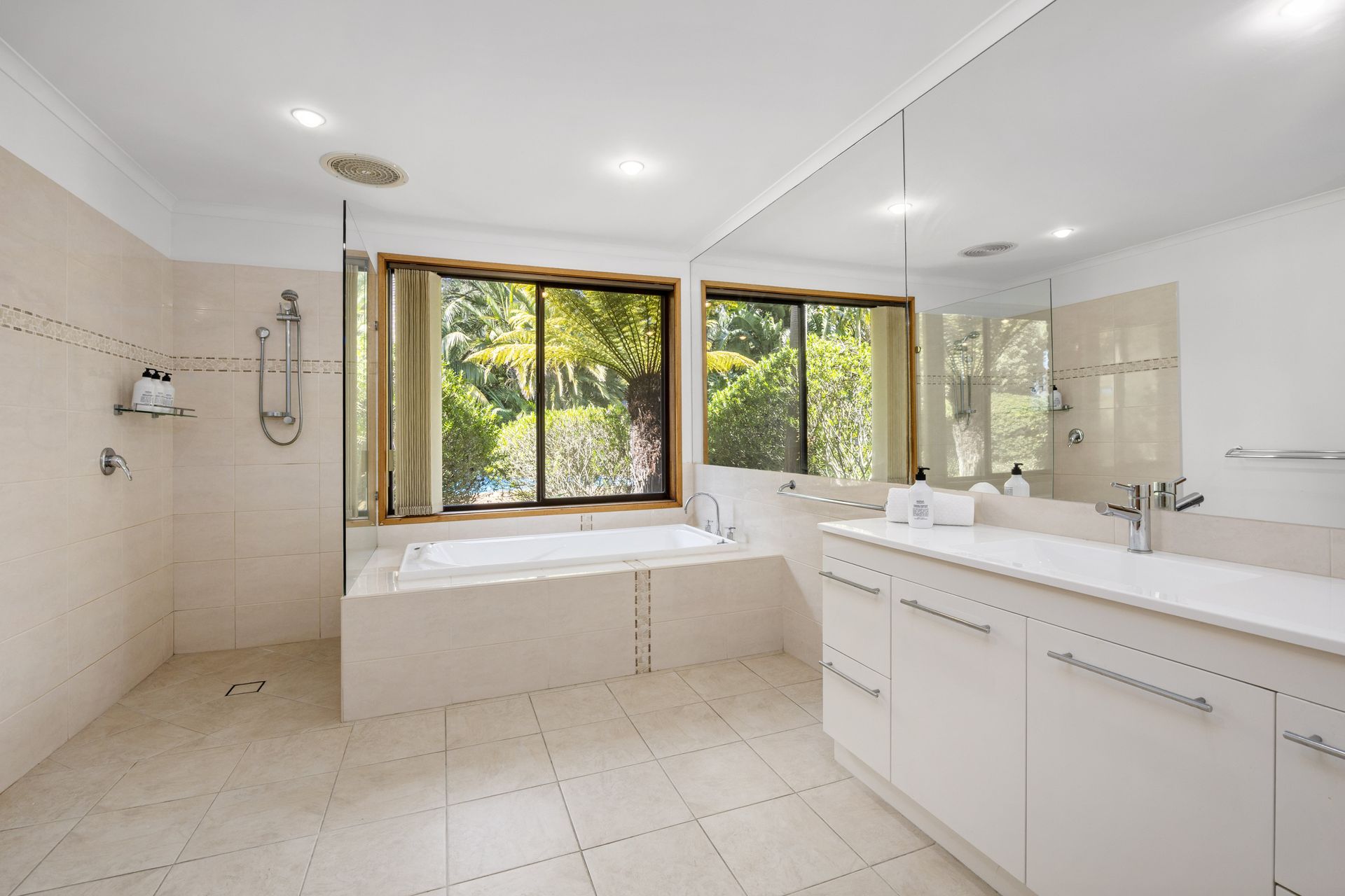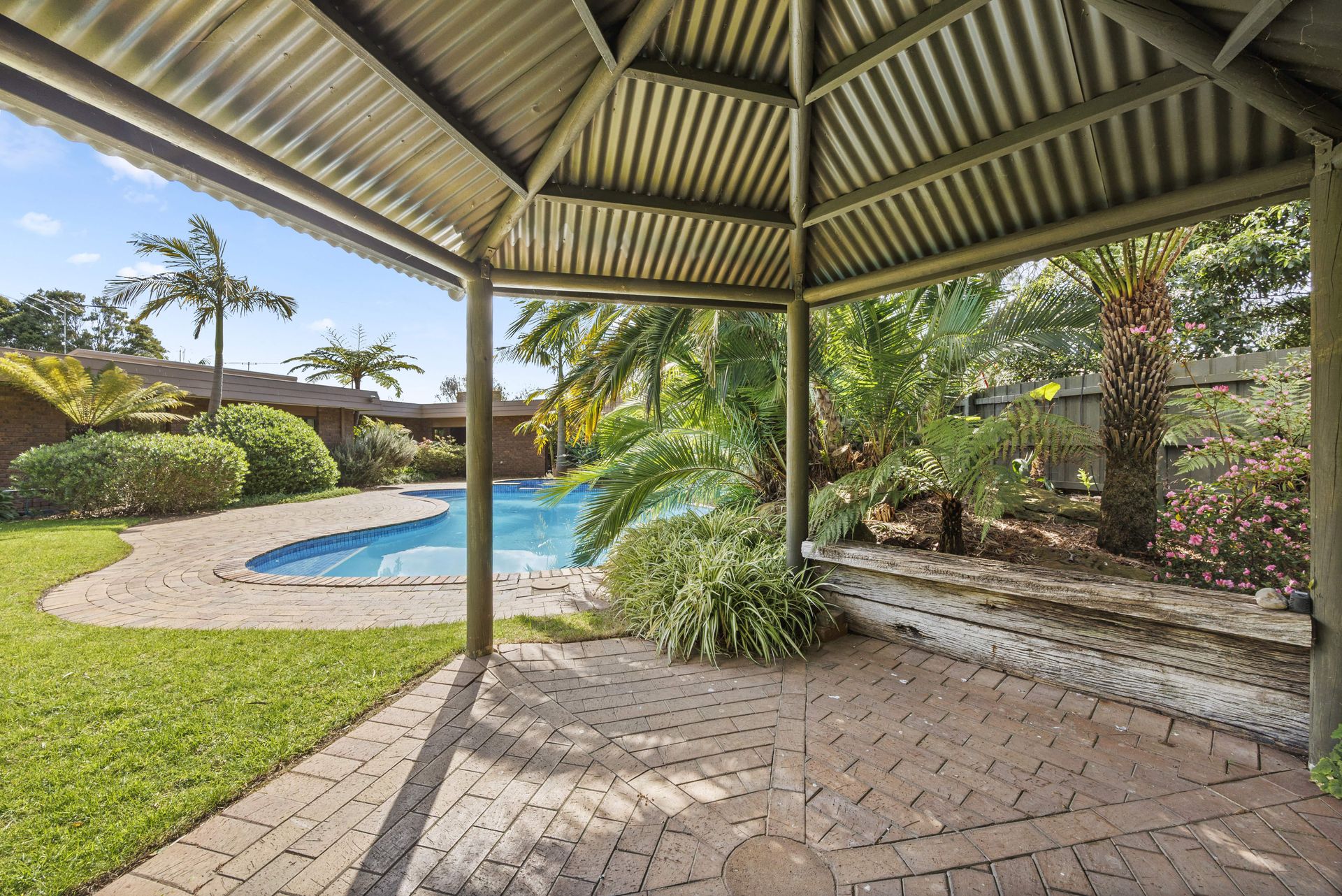 Outdoors, there are plenty of options to gather, a covered alfresco with dining table and BBQ, a rotunda nestled amongst the gardens, and the sparkling pool and spa just steps away. The gardens include a small waterfall feature, visiting birdlife, and a golf practice tee, perfect for relaxing or a little practice swing.