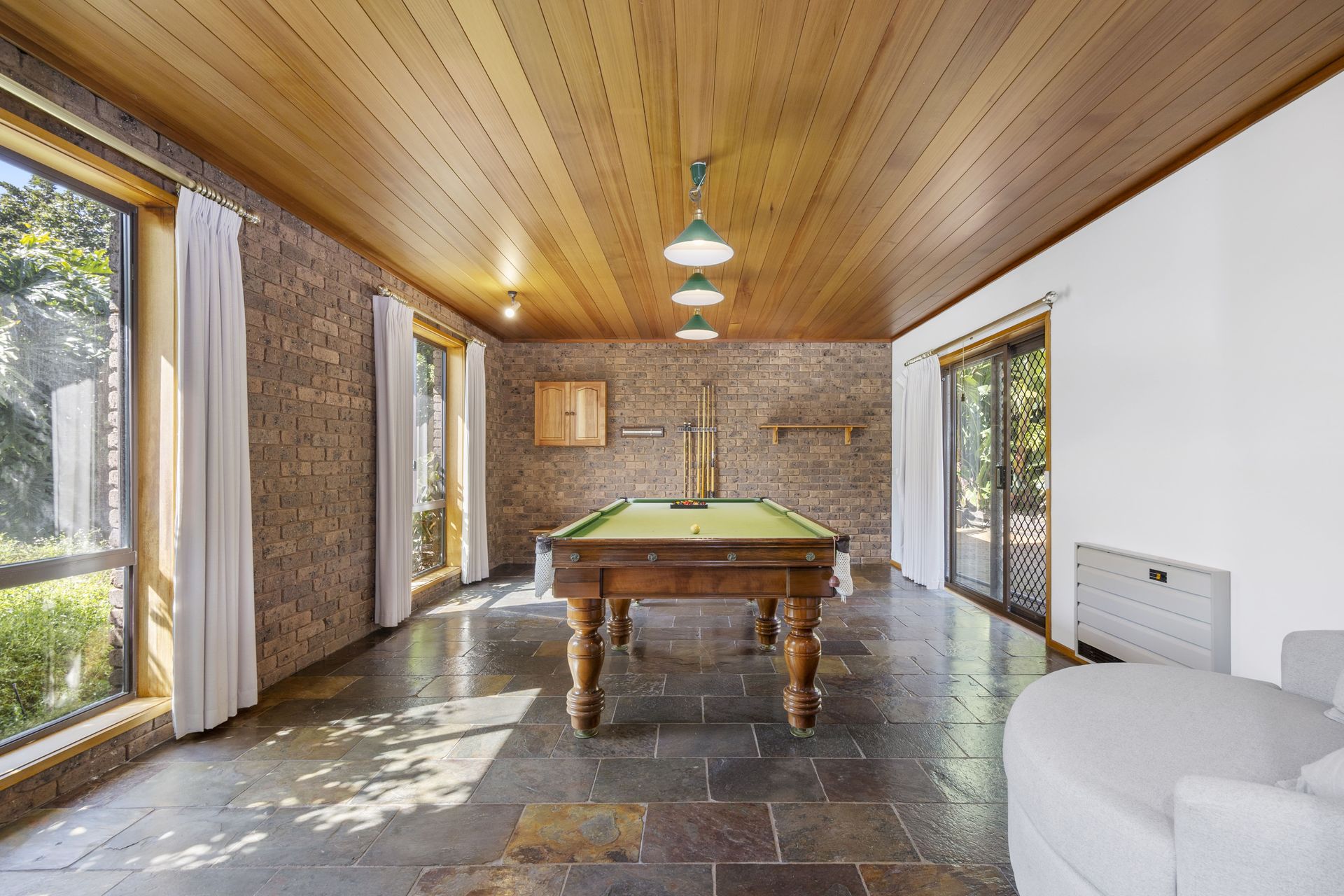 The billiard room sits just off the living area, with sliding doors that can be closed for games nights or opened up to flow out to the pool. The kitchen also opens directly to the pool area, while the dining room has sliding doors onto the undercover BBQ and alfresco.