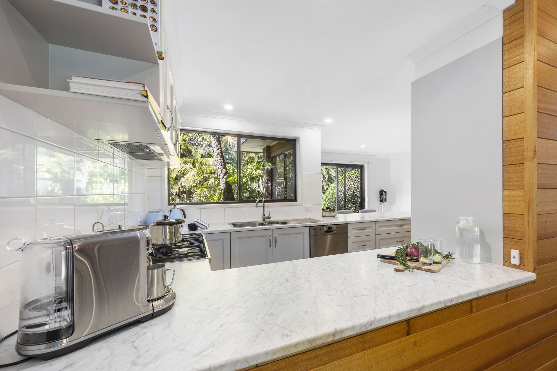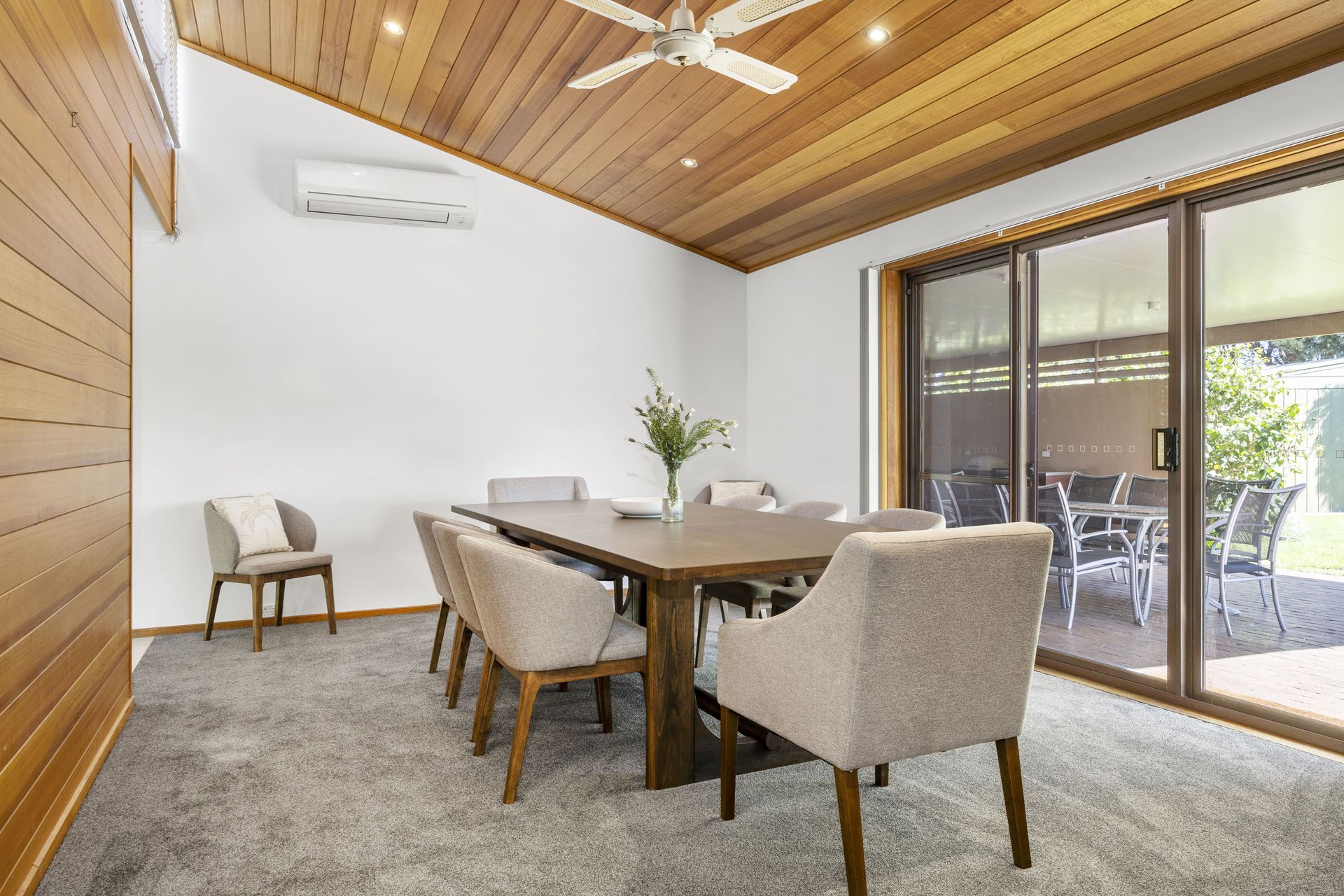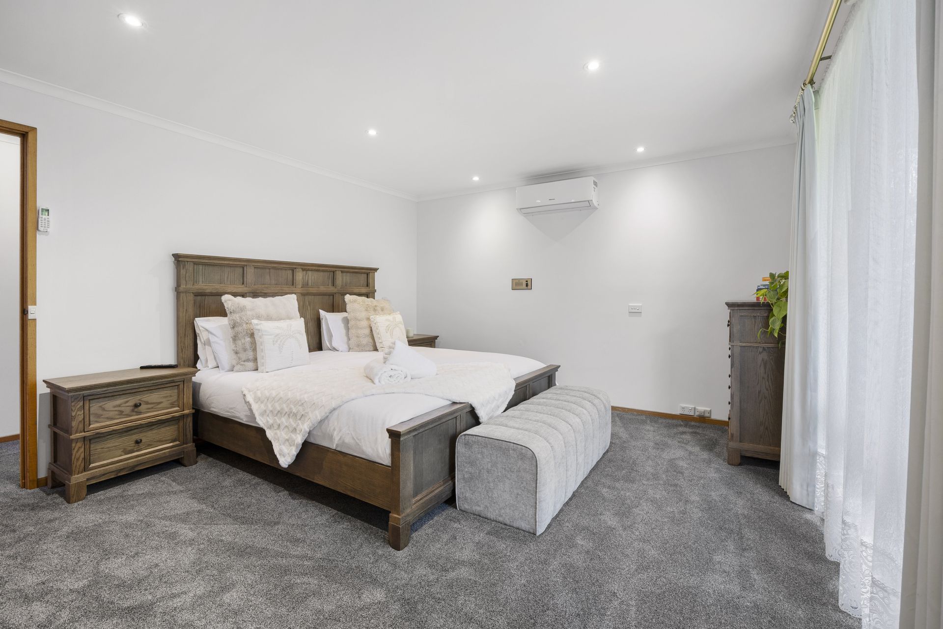 The bedrooms are tucked away down a quiet corridor off the kitchen. Each bedroom has a split system for air conditioning and heating, and the family bathroom features a spa bath for winding down at the end of the day. A laundry with powder room, washing machine, and dryer is available.